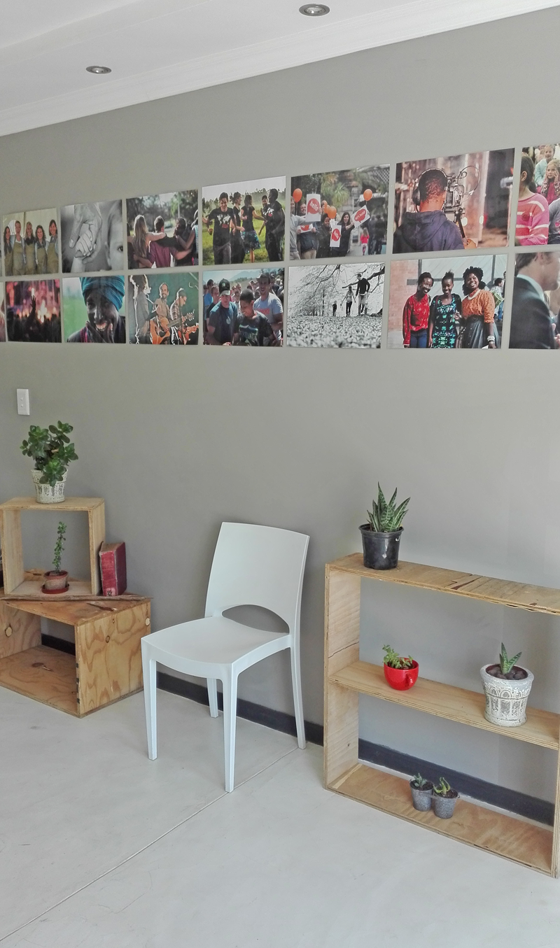 Here’s an idea, print some photographs to A3 and laminate. Apply across your chosen space, mapping out a vertical or horizontal photo wall. This is a great décor feature and also communicates a bit of church life.
