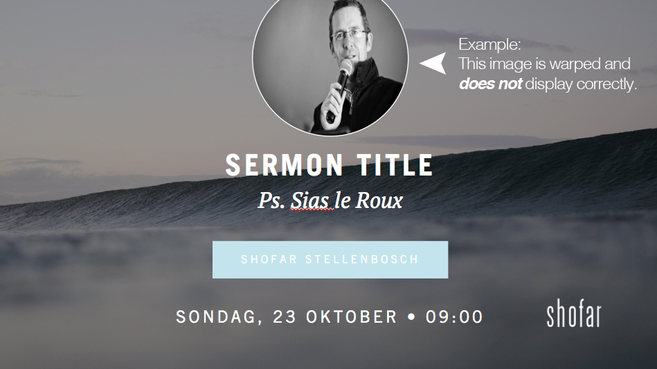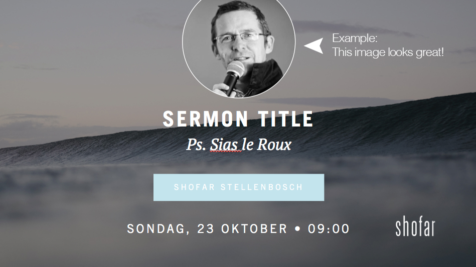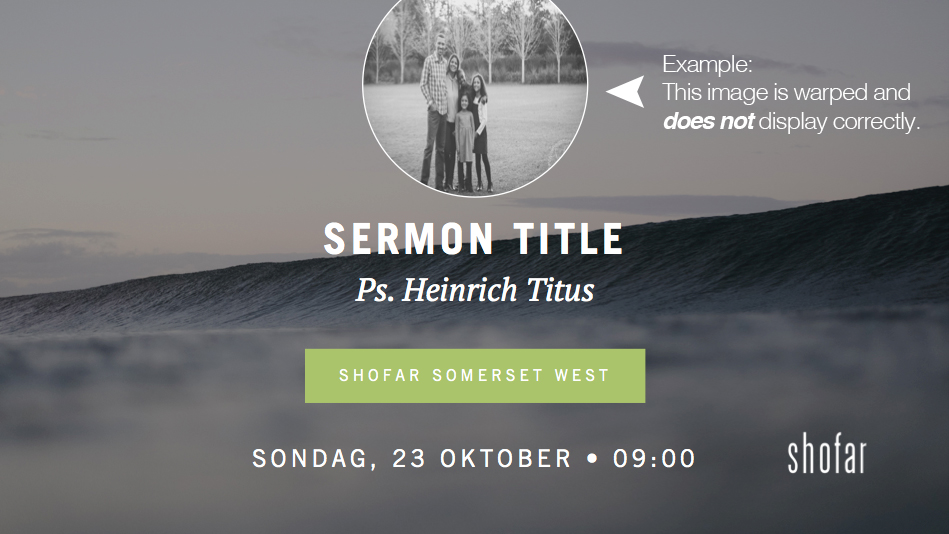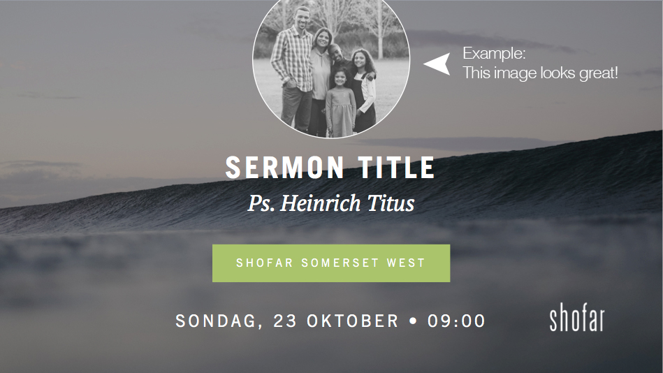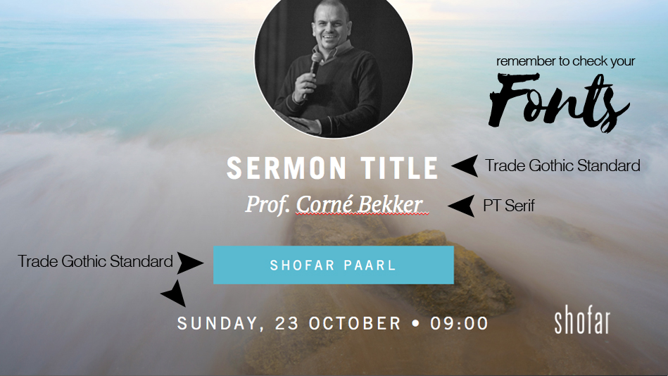 You’ll need to install one new font in order for these slides to display correctly. Make sure you’ve installed it on your production computer/laptop at church. Please note: Shofar brand guidelines still apply.